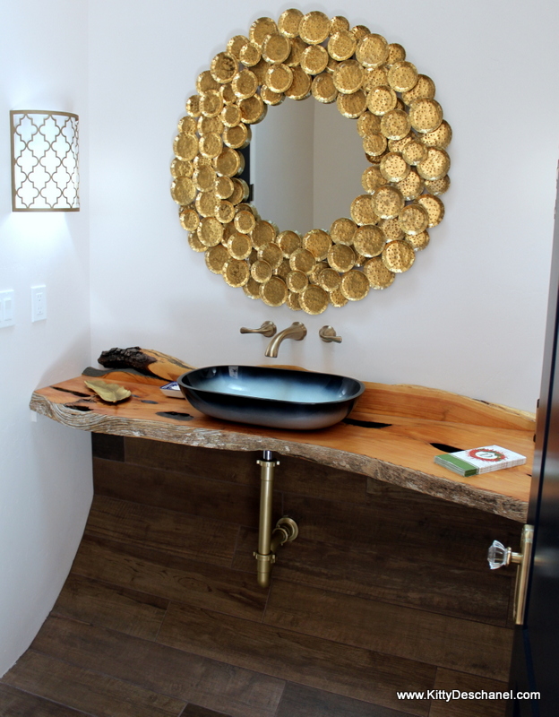 Funny side note: Our builder mentioned several times that we should consider ways to cover up the exposed plumbing beneath the sink, such as by building a box around it in matching alligator juniper. I'd planned to simply (it's always simply for me - SN the handyman might disagree) swap out the plastic pipe with a gold one. Looking online, there were many inexpensive options that closely matched the champagne bronze finish on our Delta faucet. A few weeks before moving in, I decided on a $35 kit with everything we needed. "Just wait," SN insisted. "Don't order it yet!" This is his default response to any online shopping. For some reason, I listened to him. In exchange, a few weeks later, he got to listen to me despair over my $35 option no longer being available and the next most affordable choice being more than $200. The solution? We (he) spray painted the exposed plumbing Rust-Oleum Pure Gold. Problem solved, except he also spray painted the floor. (OMG.) It won't come off.